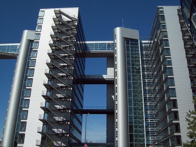 Zehn Türme mit jeweils 14 Obergeschossen (Höhe ca. 45m), über Brücken verbunden. Fassaden mit Prallfenstern. Rettungswege natürlich belüftet. Bei zwei Türmen Störfall-Berücksichtigung (Explosion) bei Nachbargebäuden. Mitwirkung bei der Bauüberwachung (Brandschutz).